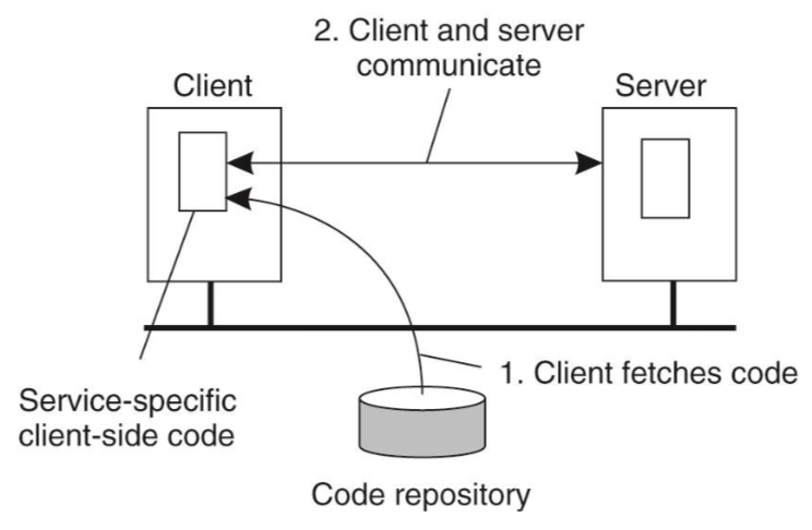 마이그레이션을 통해 시스템을 한 코드에 종속되는 것이 아니라 상황에 따라 프로토콜이나 클라이언트가 돌리는 프로그램 자체를 바꿀 수 있다. 클라이언트쪽에서 돌아가는 코드를 필요할 때 다른 원격지인 code repository에서 다운로드하여서 실행시키는 것이다. 클라이언트가 옛날 코드를 통해 실행되고 있었을 때 더 나은 코드를 받아서 실행시키면 퍼포먼스가 더 좋아질 수 있다. 실행 중에 필요한 부분만 다운로드할 수 있으면 Dynamically configured 될 수 있다.
