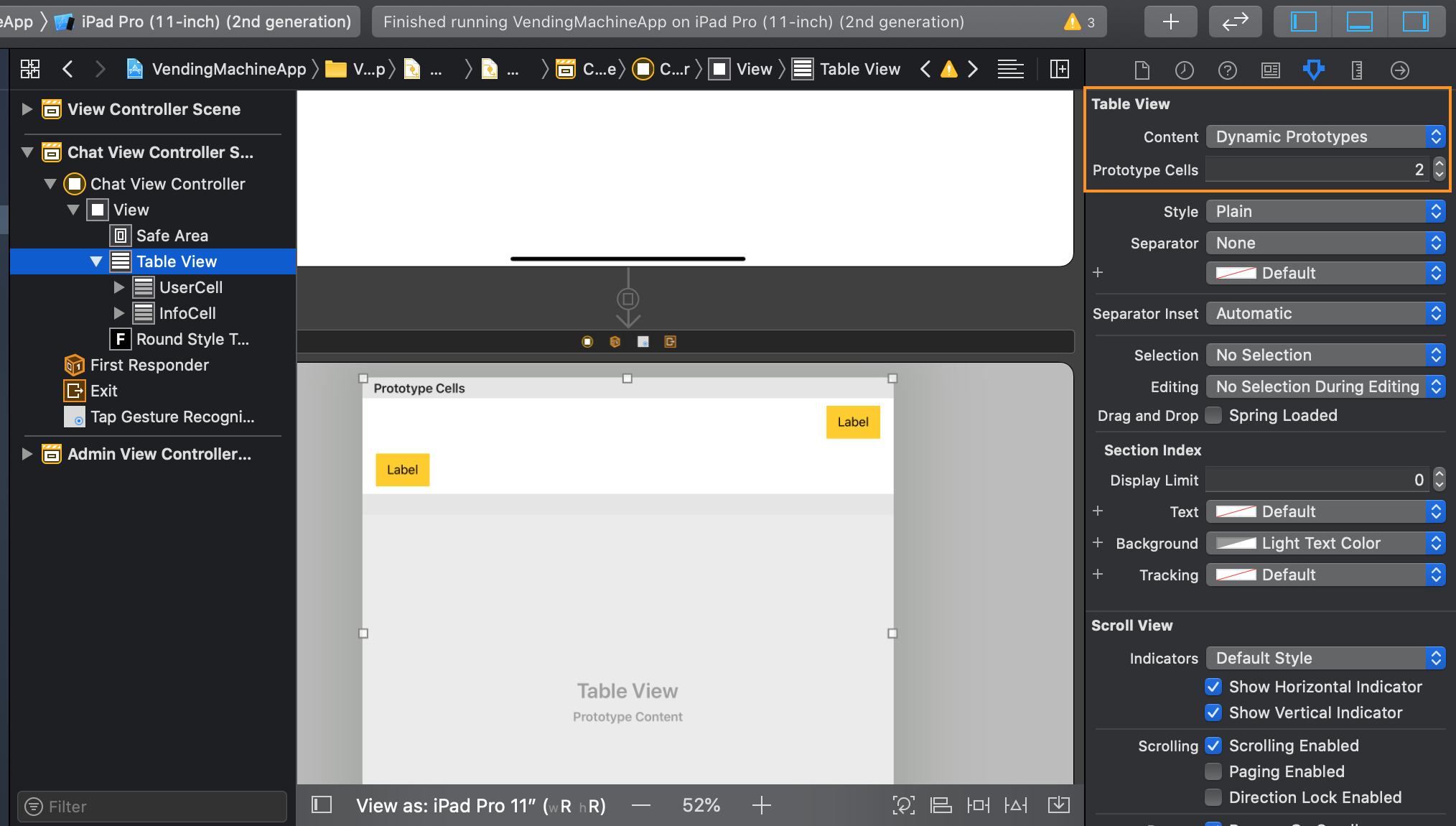 우측 상단의 뷰 인스펙터 중 Attributes를 선택 후 Prototype Cells의 수를 필요한 만큼 증가시킨다.