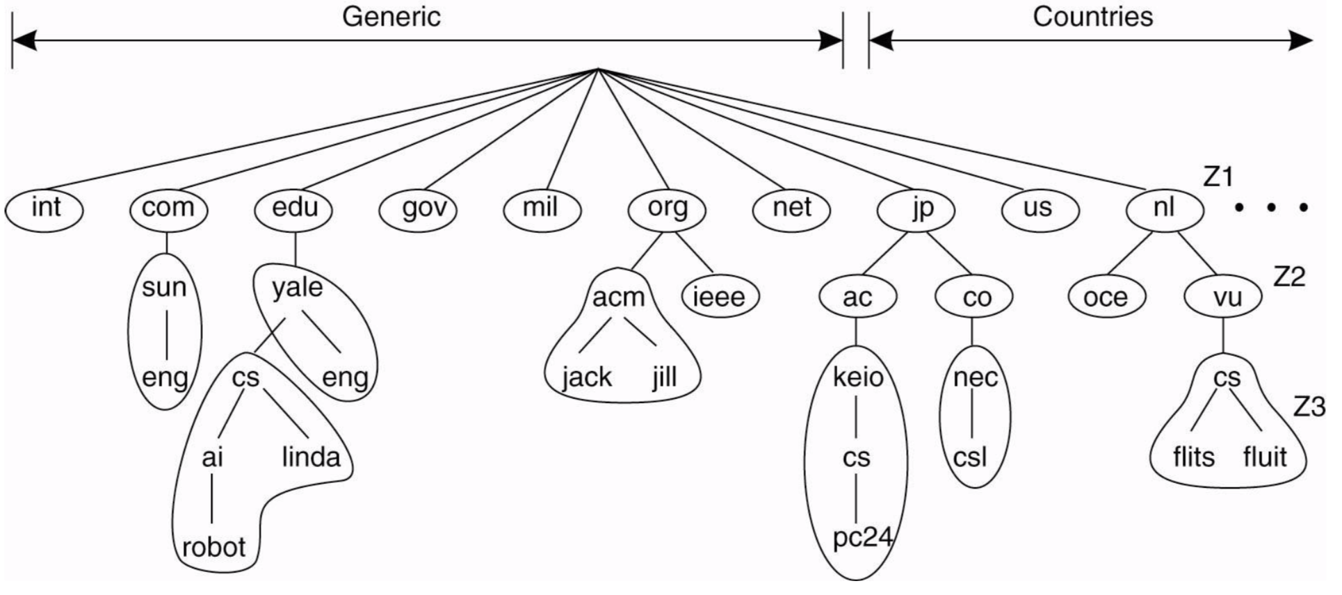 예를 들어, nl.vu.cs.flits라는 리퀘스트가 들어오면 루트부터 해당 서버를 찾는다. 이런식으로 분산되어 처리한다. 위에서 루트부터 찾는다 했는데 웬만해서는 캐싱되어있는 로컬 네임서버에서 처리한다. 그러므로 루트 서버가 전세계에 있는 DNS의 request를 받지는 않는다.